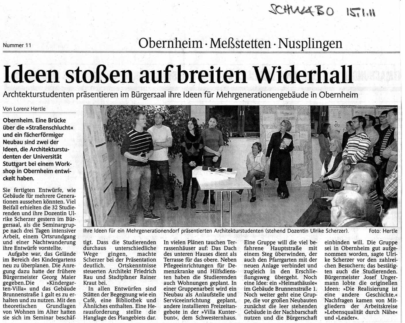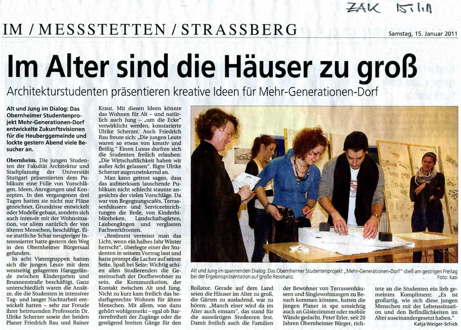 Uni Stuttgart, Institut Wohnen und Entwerfen: Seminar und Workshop mehr_generationen_dorf
